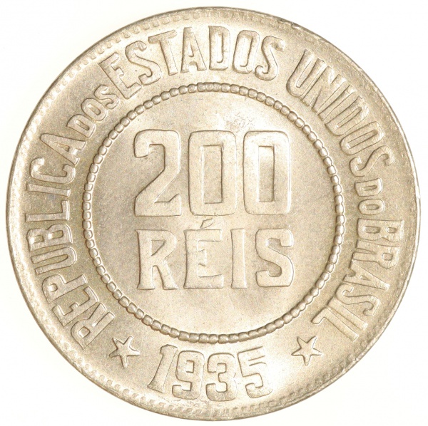 • Moeda do Brasil: 200 Réis 1935 - Flor de Cunho - Belo brilho de cunhagem