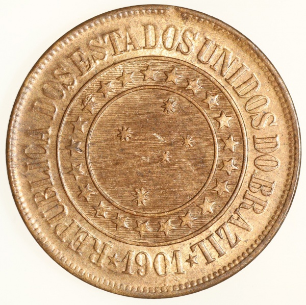 • Moeda do Brasil: 40 Réis 1901 - Flor de Cunho - Maravilhosa - Bronze